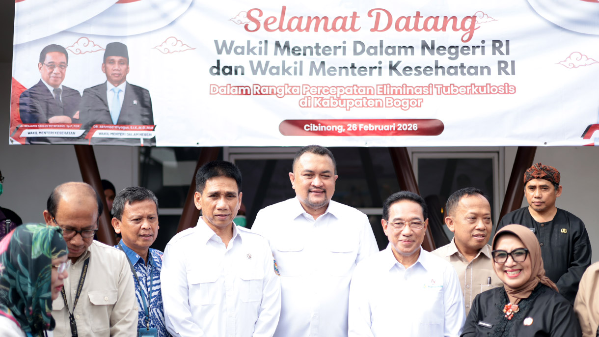 Cimandala, Kompim – Bupati Bogor, Rudy Susmanto, menerima kunjungan kerja Wakil Menteri Kesehatan RI, dr. Benjamin Paulus Octavianus, dan Wakil Menteri Dalam Negeri, Akhmad Wiyagus, di Kabupaten Bogor pada Kamis (26/2/2026). Kunjungan ini menandai momen bersejarah bagi Kabupaten Bogor yang resmi menjadi kabupaten pertama di Indonesia dalam memelopori percepatan eliminasi Tuberkulosis (TBC) secara masif dan terukur.