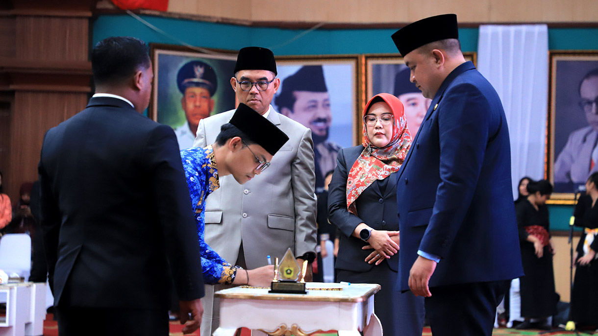 Cibinong, Kompim – Rudy Susmanto, Bupati Bogor melantik 247 orang Pegawai Pemerintah dengan Perjanjian Kerja (PPPK) Tahap II di Kabupaten Bogor. Ini bukan sekadar seremoni pengangkatan, melainkan momentum strategis dalam membangun fondasi aparatur negara yang tangguh, berkelanjutan, yang diampu oleh talenta-talenta muda untuk siap mengemban amanah. Acara yang digelar di Gedung Tegar Beriman, Cibinong, Kamis (2/10/2025), menjadi lampu hijau bagi pemangku jabatan yang siap berkontribusi langsung di lini depan pelayanan publik Kabupaten Bogor.