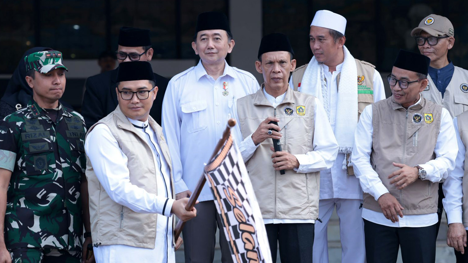 Cibinong, Kompim - Ade Ruhandi (Jaro Ade), Wakil Bupati Bogor secara resmi melepas keberangkatan jemaah haji Kabupaten Bogor Kloter 3 Tahun 2026 di Gedung Tegar Beriman, Kamis (23/4/2026) pukul 07.30 WIB. Pelepasan ini menandai dimulainya rangkaian pemberangkatan jemaah haji asal Kabupaten Bogor, sekaligus menegaskan komitmen pemerintah daerah dalam memastikan pelayanan, kesiapan, dan keselamatan jemaah selama menjalankan ibadah di Tanah Suci.