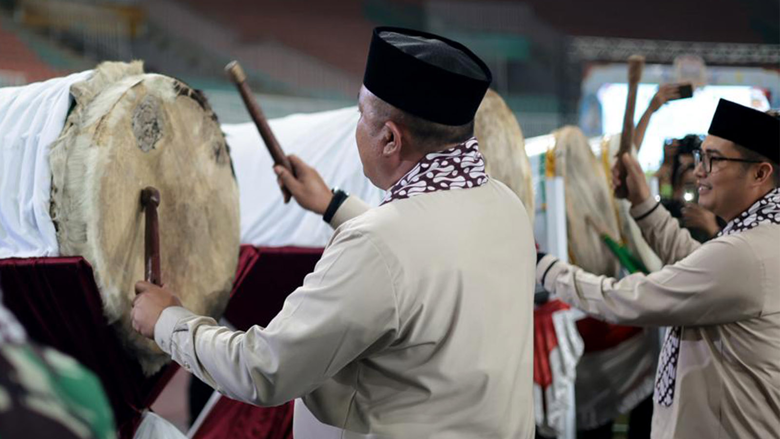 Cibinong, Kompim – Rudy Susmanto, Bupati Bogor, memimpin langsung gema takbir di Stadion Pakansari pada Jumat malam (20/3/2026), dalam gelaran Festival Bedug Pemkab Bogor untuk menyambut Hari Raya Idulfitri 1447 H. Dengan penuh haru, Rudy mengapresiasi kerukunan warga dari berbagai lapisan profesi yang memadati stadion kebanggaan masyarakat Bogor tersebut.
