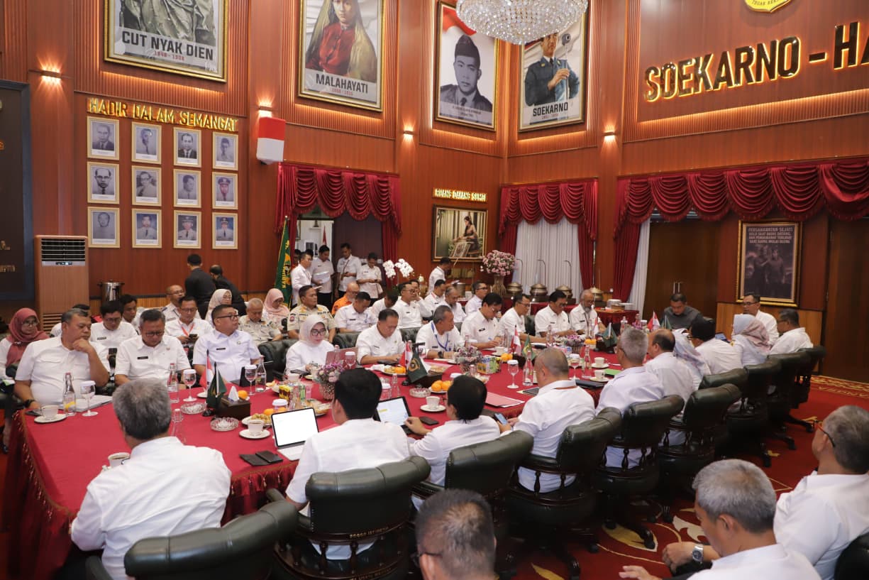 Cibinong — Bupati Bogor, Rudy Susmanto, memimpin Rapat Koordinasi Pemenuhan Dokumen Indeks Pencegahan Korupsi Daerah melalui Monitoring, Controlling, Surveillance for Prevention (IPKD MCSP) serta Survei Penilaian Integritas Komisi Pemberantasan Korupsi (KPK) RI Tahun 2025, bersama seluruh kepala perangkat daerah di lingkungan Pemerintah Kabupaten Bogor, pada Rabu (15/10/25).