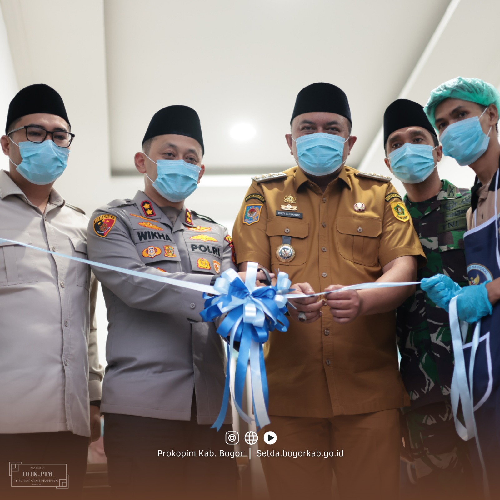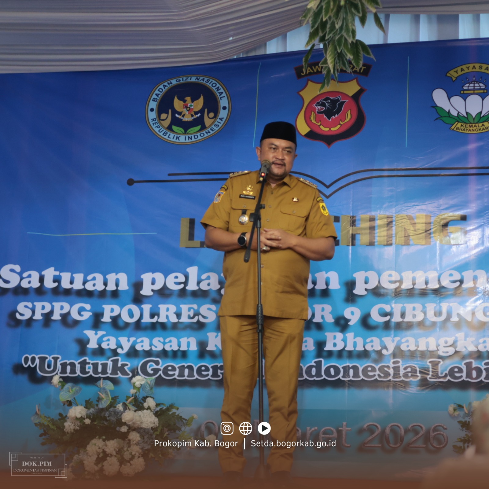 CIBUNGBULANG - Bupati Bogor, Rudy Susmanto bersama Kapolres Bogor AKBP Wikha Ardilestanto meresmikan Dapur Satuan Pelayanan Pemenuhan Gizi (SPPG) ke-9 milik Polres Bogor yang berlokasi di Kecamatan Cibungbulang, Senin (2/3).