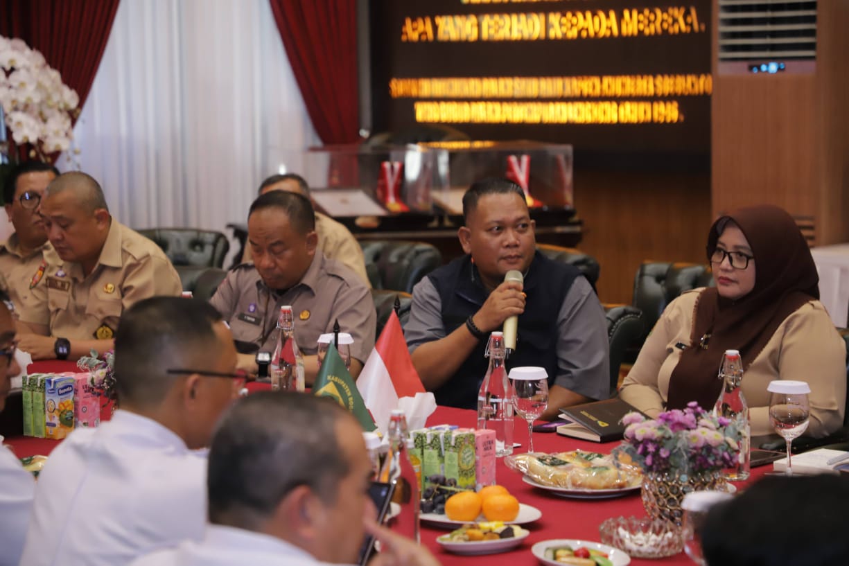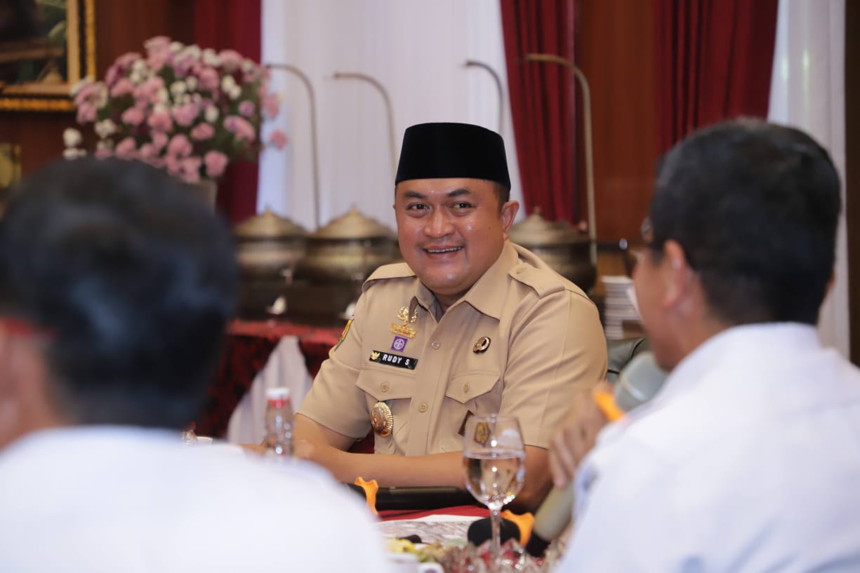 Cibinong- Bupati Bogor Rudy Susmanto menerima kunjungan audiensi dari PT Kereta Api Indonesia (KAI) yang berlangsung di Ruang Soekarno-Hatta, Pendopo Bupati Bogor, Selasa (14/10). Dalam rangka memperkuat sinergi dan kerja sama antara Pemerintah Kabupaten Bogor dan PT KAI dalam pengembangan sistem transportasi publik yang terpadu, terintegrasi, dan berkelanjutan di wilayah Kabupaten Bogor.