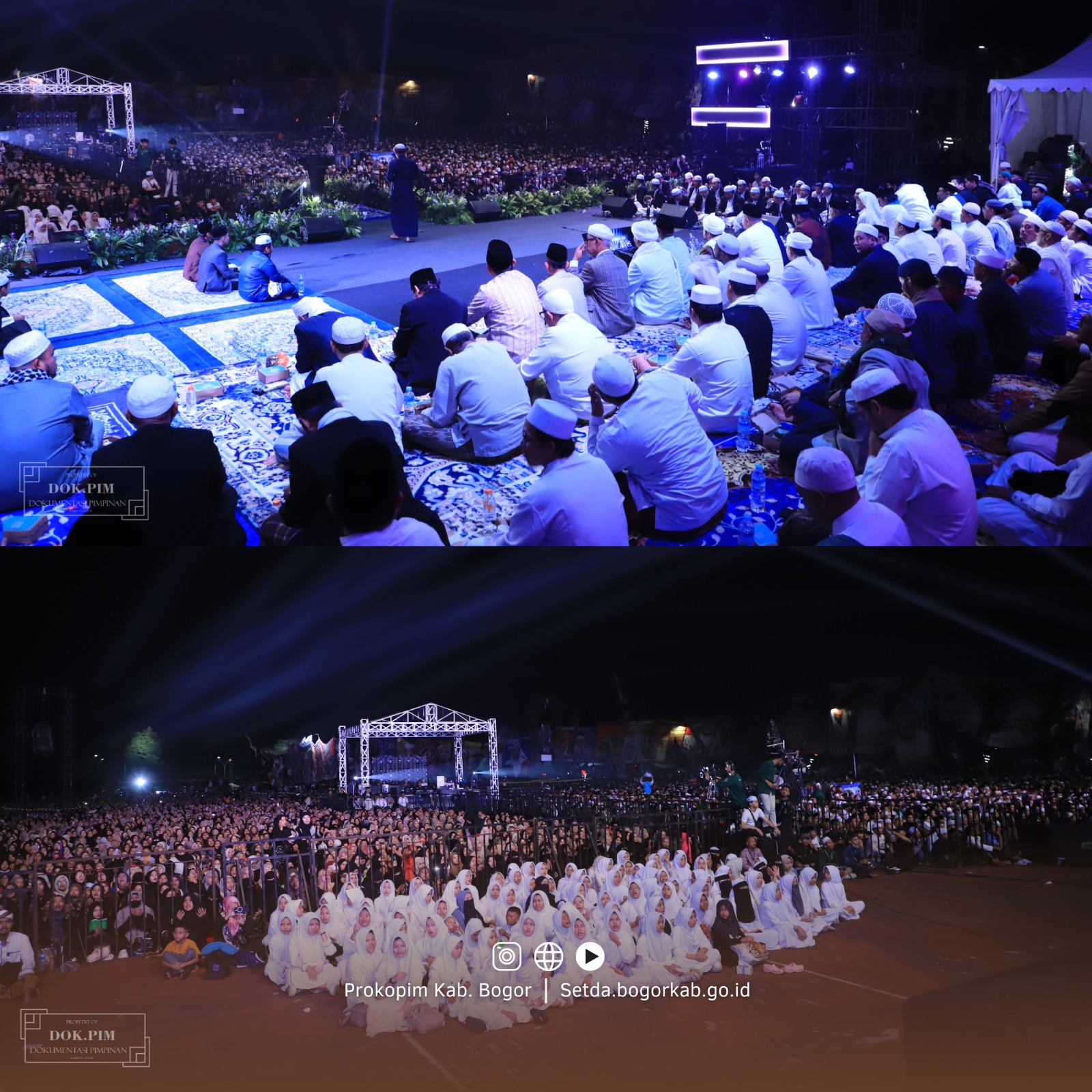CIBINONG — Bupati Bogor, Rudy Susmanto, menghadiri peringatan Hari Lahir (Harlah) ke-16 Majelis Syababul Kheir Lil Habib Mahdi Bin Hamzah Assegaf yang digelar di Lapangan Panahan Gelora Pakansari, Cibinong, pada Sabtu malam (31/1/2026).