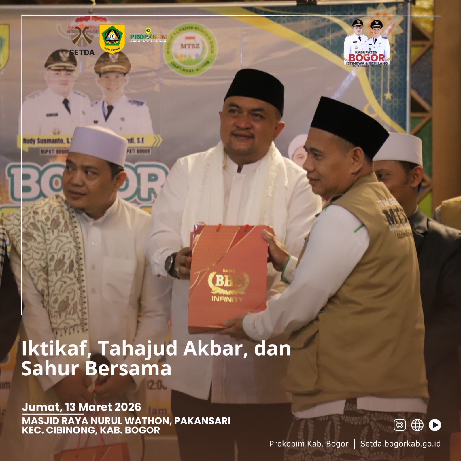 Bupati Bogor Rudy Susmanto menyampaikan bahwa momentum 10 hari terakhir Ramadan merupakan waktu yang sangat istimewa untuk meningkatkan ibadah dan memperkuat kedekatan spiritual kepada Allah SWT.