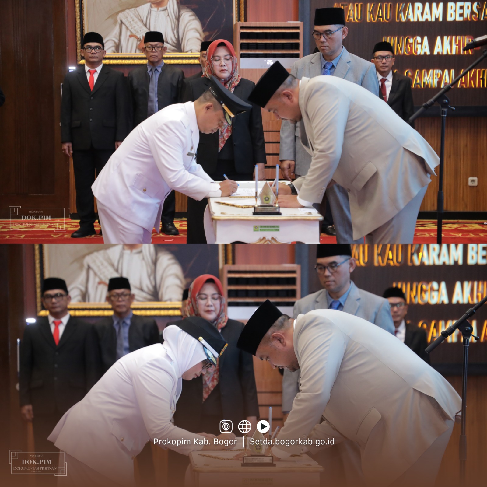 Cibinong - Untuk memperkuat kinerja birokrasi dan meningkatkan kualitas pelayanan publik, Bupati Bogor Rudy Susmanto melantik dan mengambil sumpah jabatan 21 pejabat administrator dan pejabat pengawas di lingkungan Pemerintah Kabupaten Bogor di Aula Soekarno Hatta, Kamis (26/2/2026).