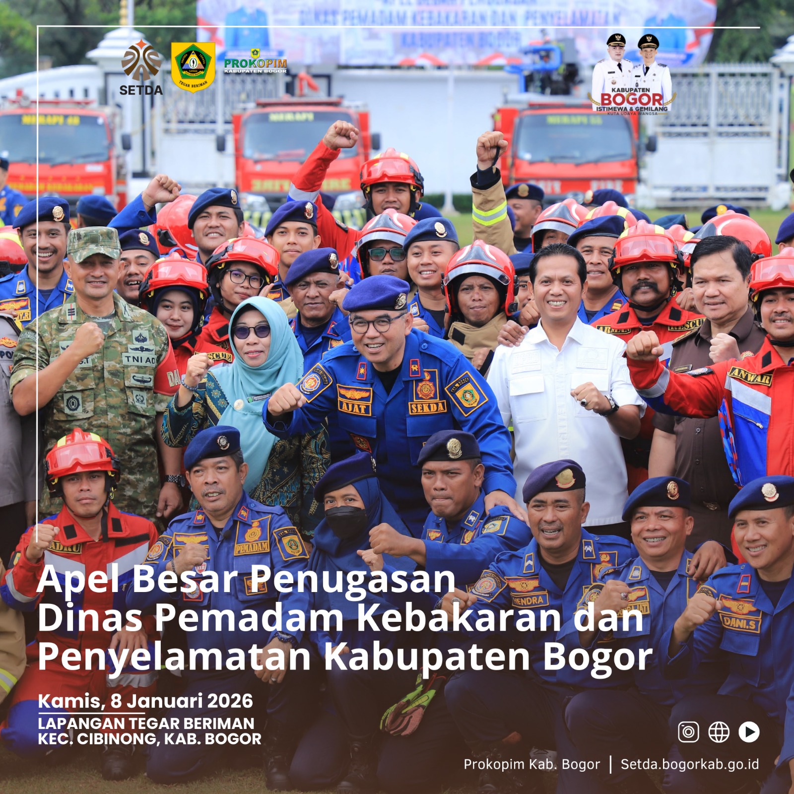 Hal tersebut disampaikan Sekretaris Daerah (Sekda), Ajat Rochmat Jatnika saat mewakili Bupati Bogor memimpin Apel Besar Penugasan Dinas Pemadam Kebakaran dan Penyelamatan Kabupaten Bogor, di Lapangan Tegar Beriman, Cibinong, Kamis (8/1).