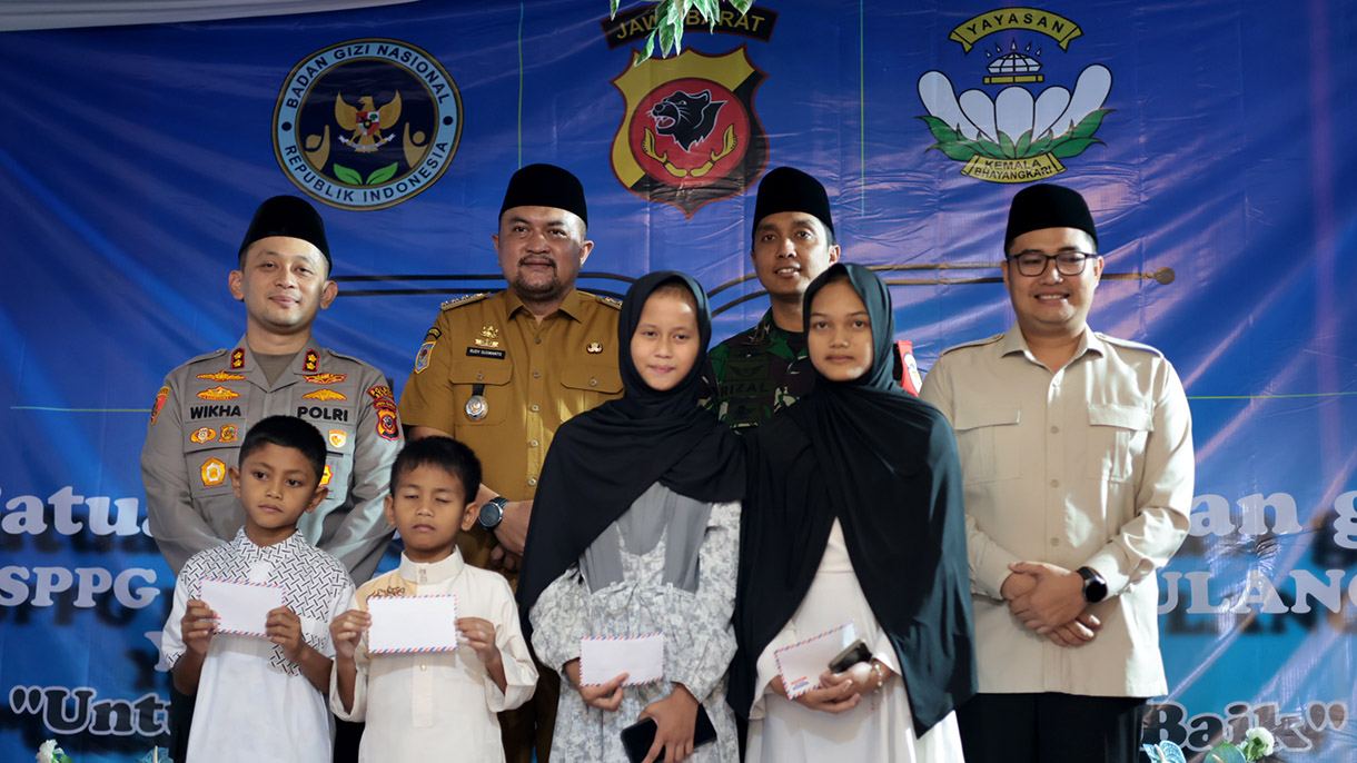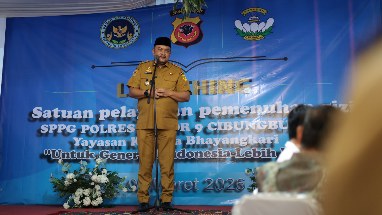 Cibungbulang, Kompim - Bupati Bogor, Rudy Susmanto menghadiri pembukaan Satuan Pelayanan Pemenuhan Gizi (SPPG) ke-9 Polres Bogor di Desa Sukamaju, Kecamatan Cibungbulang, Senin (2/3/2026). Kegiatan tersebut menjadi bagian dari dukungan Pemerintah Kabupaten Bogor terhadap program Makan Bergizi Gratis, sekaligus penguatan sinergi lintas sektor dalam memastikan implementasi program strategis nasional berjalan optimal di daerah.