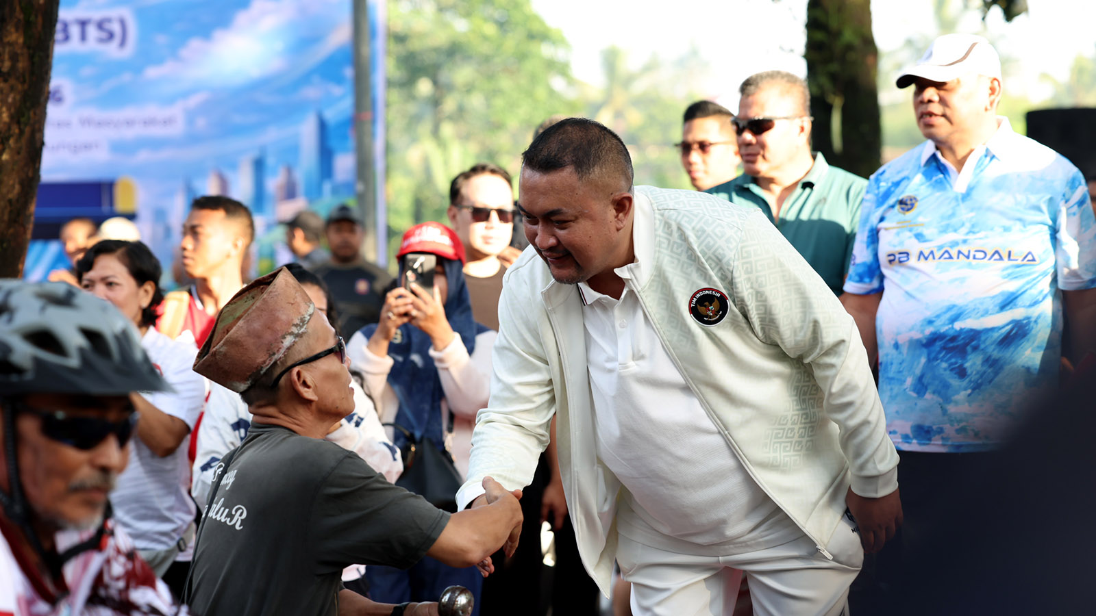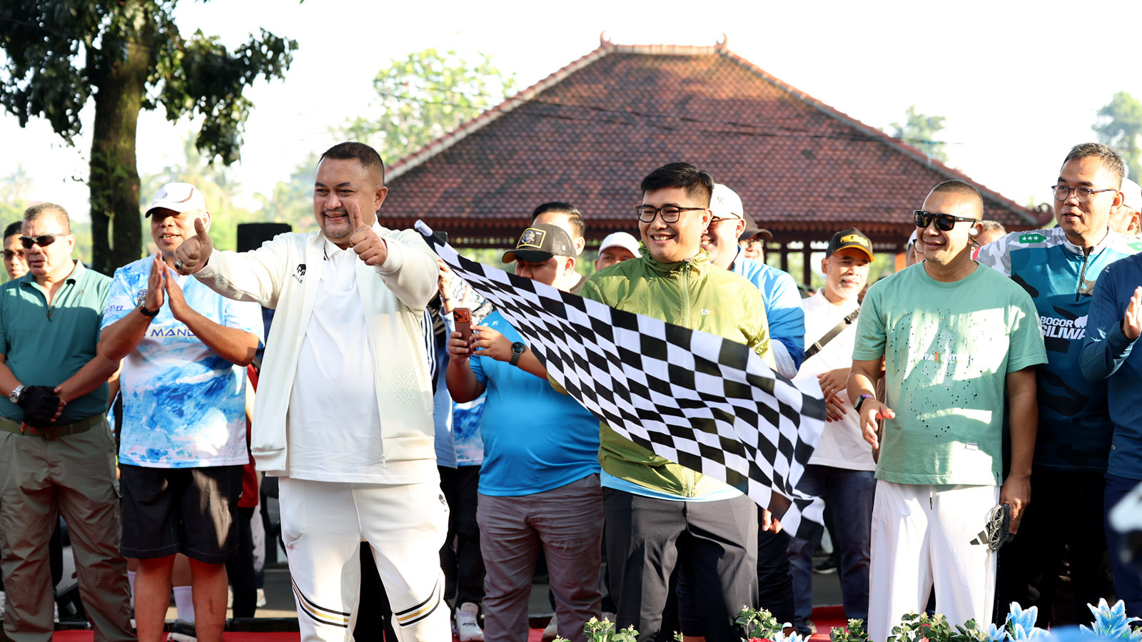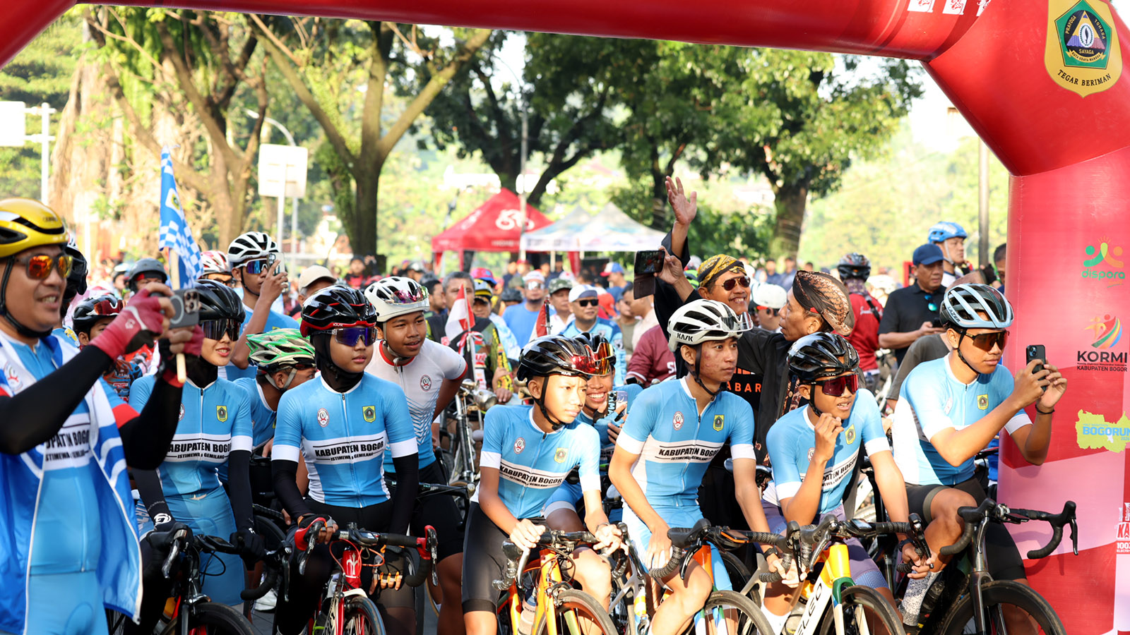 Cibinong, Kompim – Rudy Susmanto, Bupati Bogor, menyapa ribuan warga yang memadati kawasan Jalan Tegar Beriman saat meresmikan pembukaan kembali Car Free Day (CFD) pasca-Lebaran, Minggu (5/4/2026). Kembalinya rutinitas mingguan ini disambut antusias oleh berbagai komunitas melalui gelaran Fun Bike, Fun Walk, hingga trial Bogor Run.
