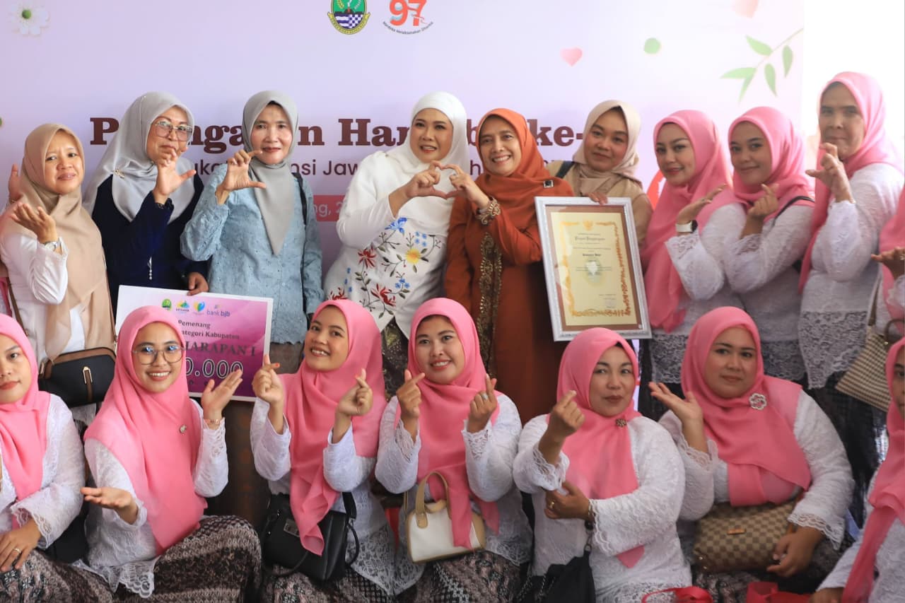 Penghargaan tersebut diterima langsung oleh Ketua TP PKK Kabupaten Bogor, Eva Rudy Susmanto, didampingi Kepala Dinas Pemberdayaan Perempuan, Perlindungan Anak, Pengendalian Penduduk dan Keluarga Berencana (DP3AP2KB) Kabupaten Bogor, dalam rangkaian Peringatan Hari Ibu ke-97 Tingkat Provinsi Jawa Barat yang diselenggarakan oleh DP3AKB Provinsi Jawa Barat di Sport Jabar Arcamanik, Kota Bandung, Selasa (23/12/2025).