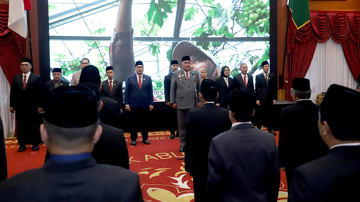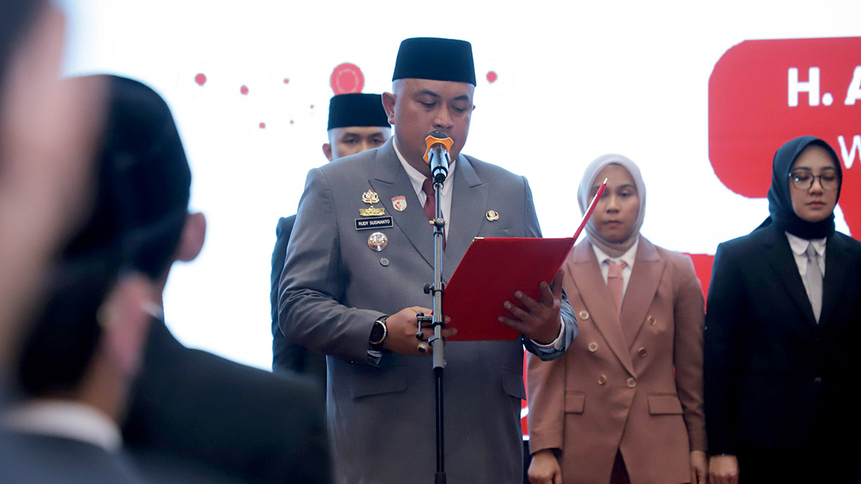 Cibinong, Kompim – Rudy Susmanto Bupati Bogor, menegaskan bahwa Pemerintah Kabupaten Bogor harus mencerminkan jati diri daerah melalui filosofi Prayoga Tohaga Sayaga, Kuta Udaya Wangsa. Hal tersebut disampaikannya saat melantik dan mengambil sumpah janji jabatan 24 pejabat di lingkungan Pemerintah Kabupaten Bogor yang berlangsung di Pendopo Bupati Bogor, pada Jumat (13/2/2026).