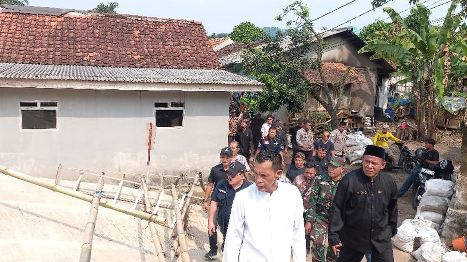 Rumpin, Kompim – Jaro Ade, Wakil Bupati Bogor, meminta warga Desa Gobang untuk sementara tidak menempati bangunan di bantaran sungai pasca-ambruknya jembatan utama di Rumpin, pada Kamis (16/4/2026). Kehadiran Jaro Ade di lokasi bencana bertujuan memastikan langkah antisipasi cepat terhadap ancaman keselamatan warga akibat luapan sungai.