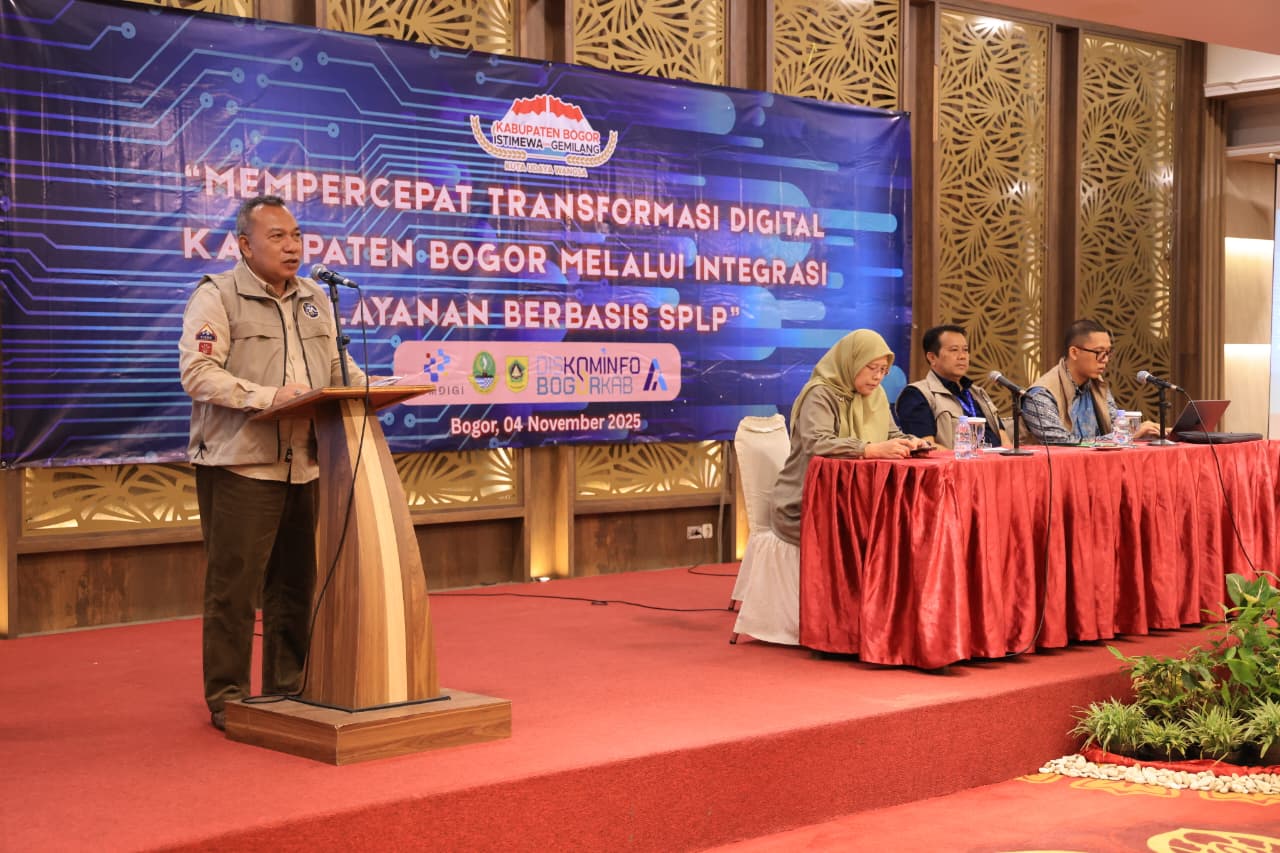 Cibinong – Pemerintah Kabupaten Bogor melalui Dinas Komunikasi dan Informatika Kabupaten Bogor terus berupaya mempercepat transformasi digital di berbagai sektor pelayanan publik. Salah satu langkah strategis yang dilakukan yakni melalui integrasi layanan berbasis Sistem Pemerintahan Layanan Publik (SPLP), yang berlangsung di M-One Sukaraja, Selasa (4/11/25).