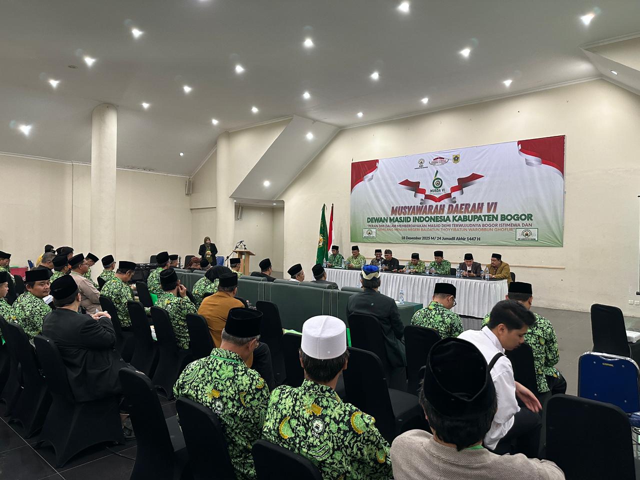 Cibinong – Dewan Masjid Indonesia (DMI) Kabupaten Bogor menggelar Musyawarah Daerah (Musda) ke-VI sebagai forum strategis untuk mengevaluasi kinerja organisasi, menyusun arah program kerja, serta memilih kepengurusan baru periode 2025–2030, yang berlangsung di Aula Baznas Kabupaten Bogor, Kamis (18/12/2025).