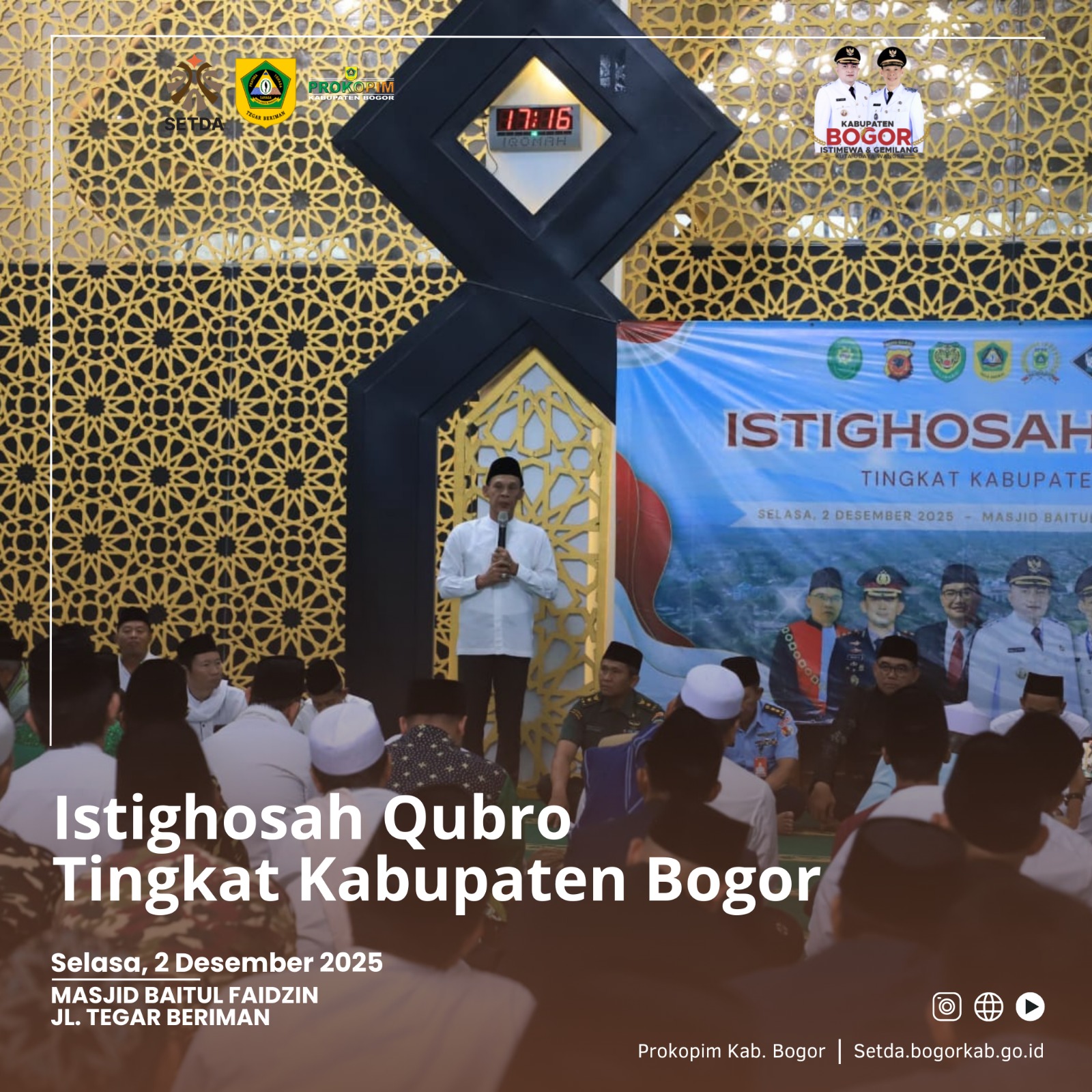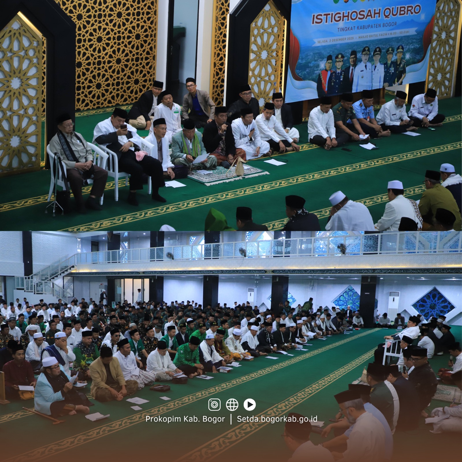 CIBINONG – Pemerintah Kabupaten (Pemkab) Bogor bersama jajaran Forum Komunikasi Pimpinan Daerah (Forkopimda), alim ulama, tokoh masyarakat, organisasi islam, dan jajaran TNI, menggelar istighosah kubro serentak sebagai ikhtiar spiritual menghadapi potensi bencana dan cuaca ekstrem di penghujung tahun, di Masjid Baitul Faidzin, Cibinong, Selasa (2/12).