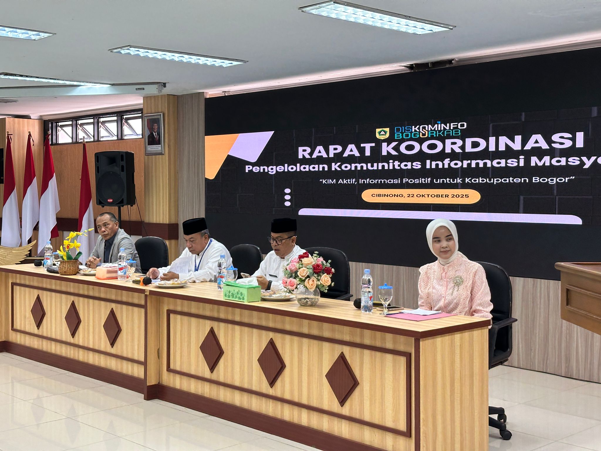 ibinong – Pemerintah Kabupaten Bogor melalui Dinas Komunikasi dan Informatika Kabupaten Bogor menggelar kegiatan Rapat Koordinasi dengan Kelompok Informasi Masyarakat (KIM), untuk mendorong KIM untuk lebih aktif memanfaatkan media sosial sebagai kanal penyampaian informasi, yang digelar di aula Diskominfo Kabupaten Bogor, pada Rabu (22/10/25).