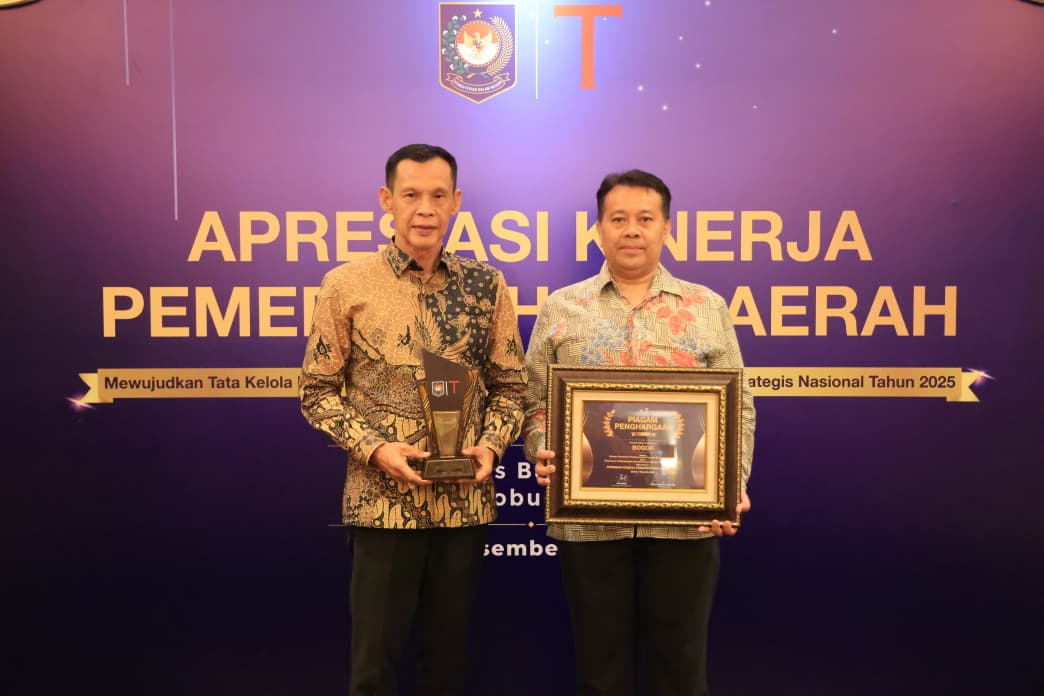 Berbagi tugas dengan Bupati Bogor, Wakil Bupati Bogor, Jaro Ade menerima penghargaan yang diserahkan langsung oleh Menteri Dalam Negeri, pada ajang Apresiasi Kinerja Pemerintahan Daerah tahun 2025. Hadir mendampingi Wabup Jaro Ade, Kepala Bidang Aplikasi Informatika Diskominfo, Dadang Imansyah.