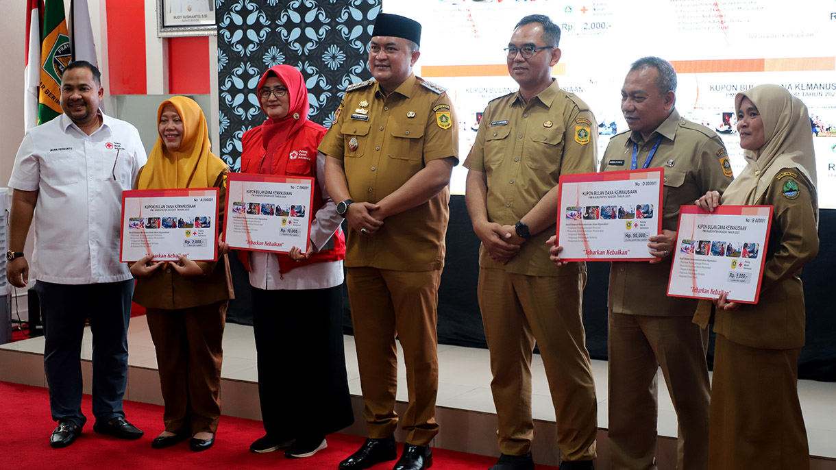 Cibinong, Kompim – Bupati Bogor hadir dalam kegiatan Pencanangan Bulan Dana Kemanusiaan dan Akreditasi Unit Transfusi Darah PMI Kabupaten Bogor 2025, yang diselenggarakan di Markas Besar PMI Kabupaten Bogor pada pada Senin (13/10/2025). Kegiatan tersebut juga dihadiri oleh Forkopimda Kabupaten Bogor beserta Sekretaris Daerah Kabupaten Bogor, menunjukkan komitmen bersama dalam mendukung pelayanan kemanusiaan dan peningkatan kualitas pelayanan kemanusiaan di wilayah Kabupaten Bogor.