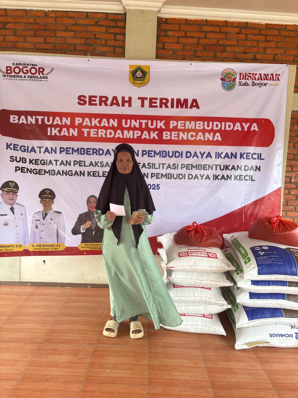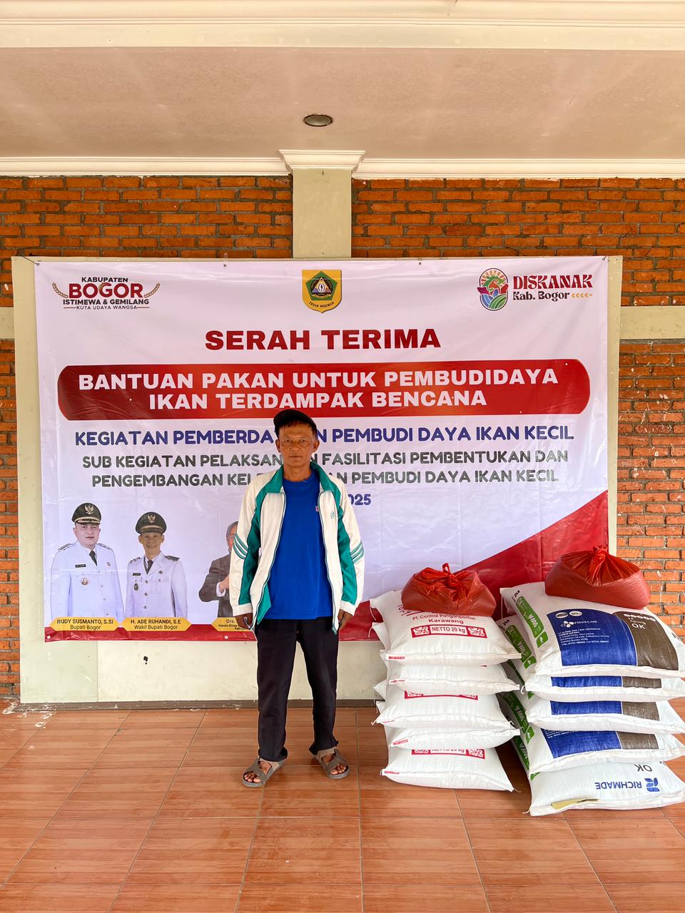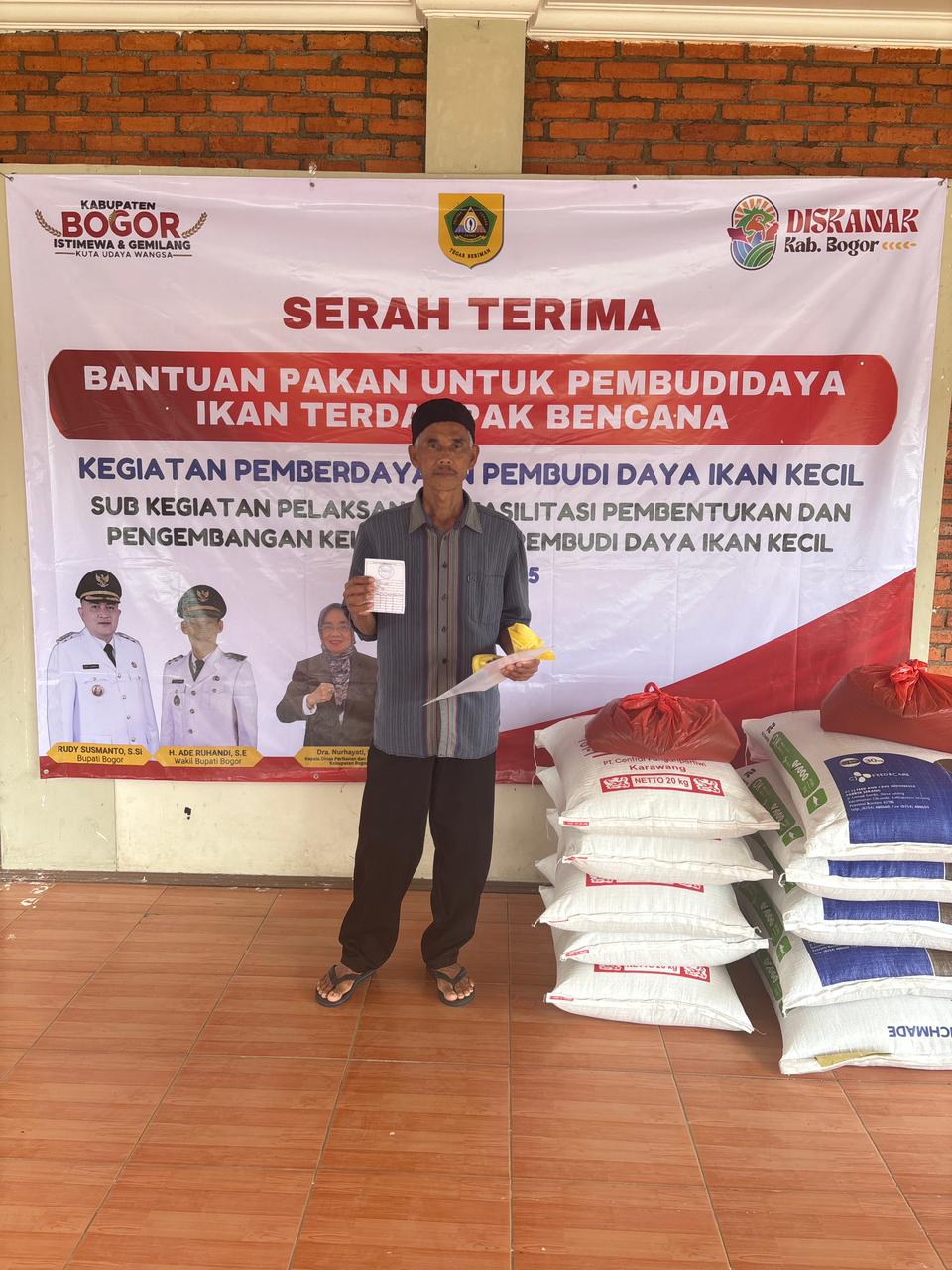 “Saya ucapkan terima kasih kepada Bupati Bogor yang telah memberikan bantuan ini untuk pakan ikan yang terdampak banjir,” ujar Bapak Gojali.