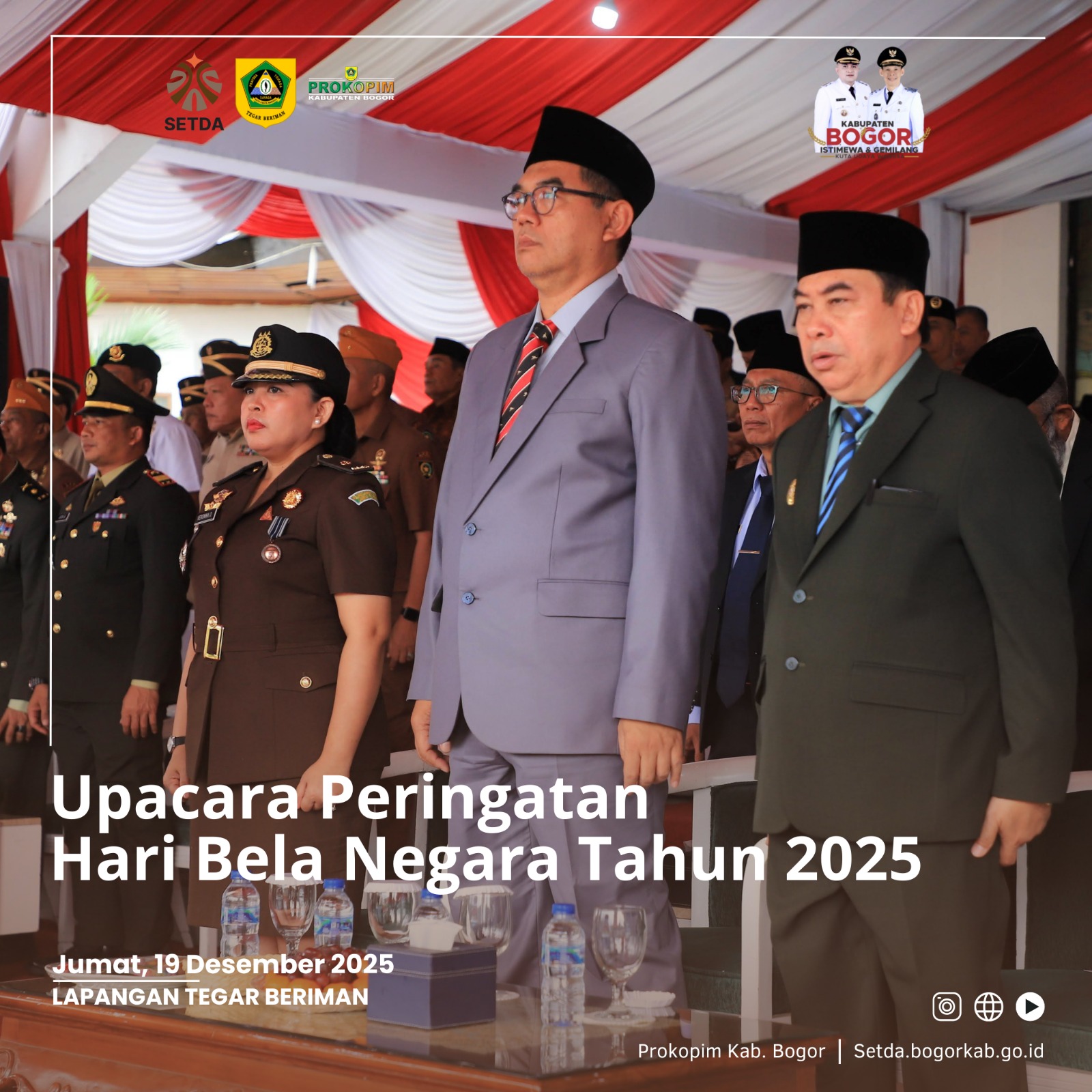 CIBINONG - Bupati Bogor, Rudy Susmanto, menyampaikan amanat Presiden Republik Indonesia, Prabowo Subianto, saat memimpin upacara peringatan Hari Bela Negara (HBN) ke-77 Tahun 2025,di Lapangan Tegar Beriman, Cibinong, Kamis (19/12). Presiden Prabowo mengajak seluruh warga negara, teguhkan bela negara demi hadapi tantangan zaman.