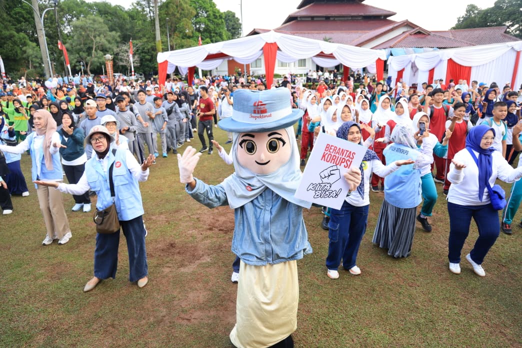 CIBINONG-Bupati Bogor, Rudy Susmanto, memimpin pembacaan deklarasi anti korupsi pada peringatan Hari Anti Korupsi Sedunia (Hakordia) tahun 2025, yang berlangsung di kegiatan Car Free Day (CFD), Ahad (30/11). Rudy menegaskan komitmen pemerintahan yang bersih adalah prioritas utama, serta mengajak generasi muda perangi korupsi.