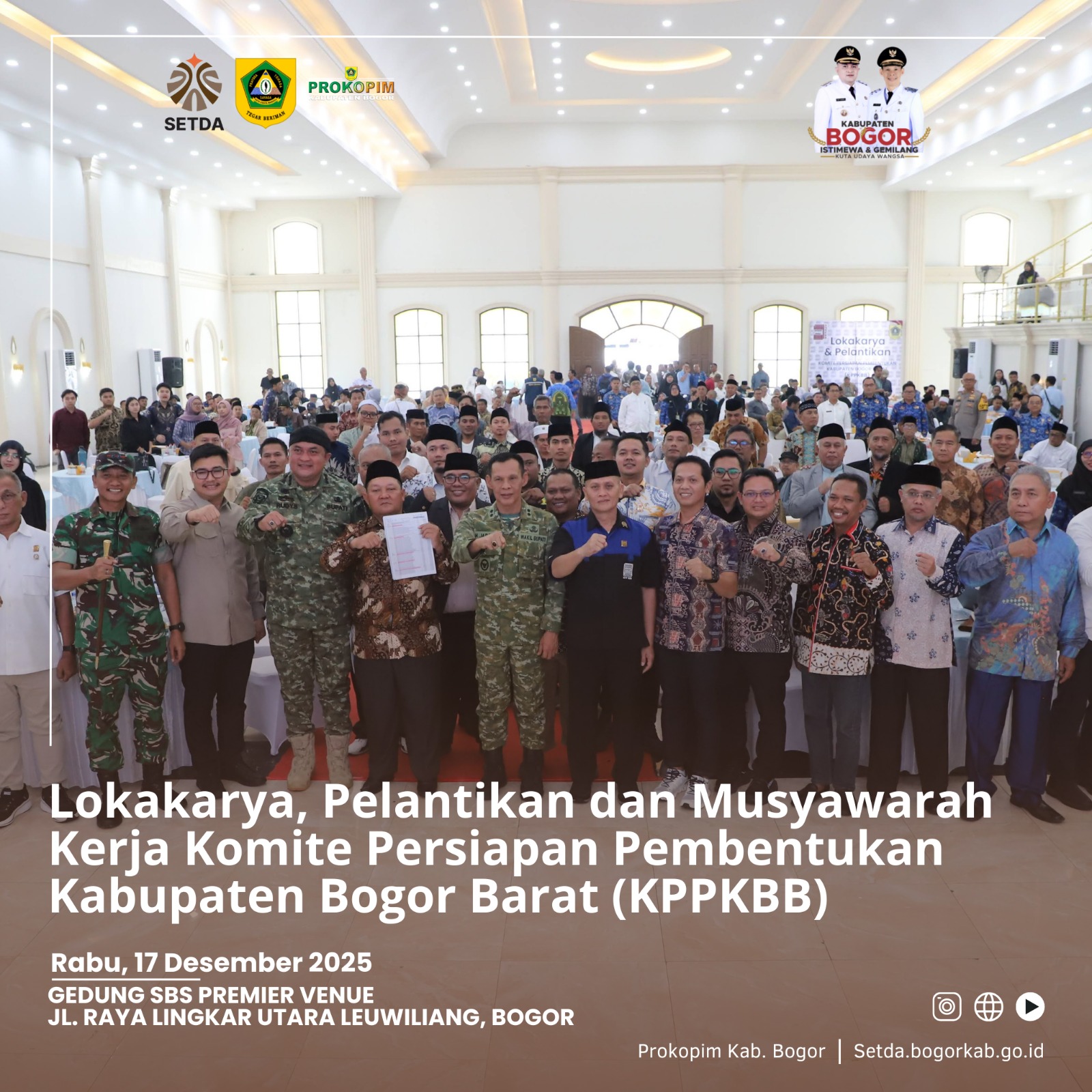 Hal tersebut disampaikan Bupati Bogor saat membuka Lokakarya dan Pelantikan Pengurus Komite Persiapan Pemekaran Kabupaten Bogor Barat (KPP KBB) di Gedung SBS Premier Venue, Rabu (17/12). Pada kesempatan tersebut, Bupati Bogor mengajak seluruh pihak melakukan refleksi dan evaluasi atas perjuangan pemekaran yang telah berlangsung lebih dari tiga dekade.