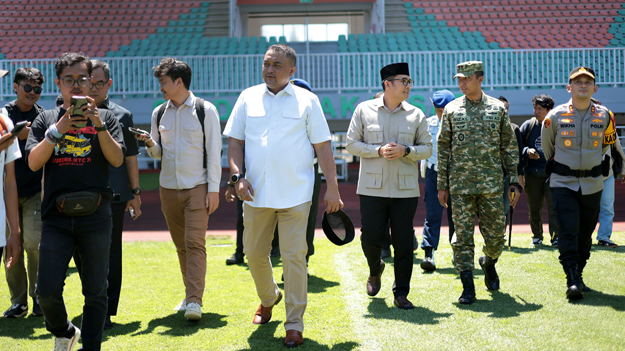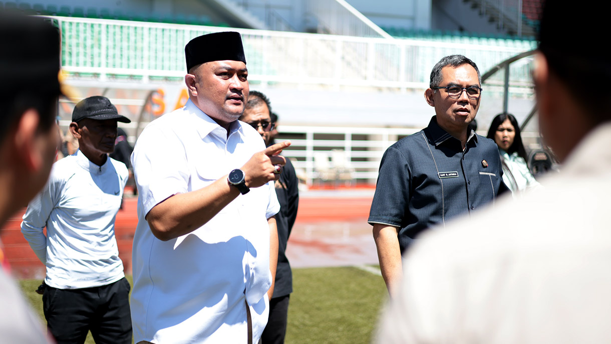 Cibinong, Kompim – Rudy Susmanto, Bupati Bogor, meninjau kesiapan Stadion Pakansari yang direncanakan menjadi lokasi perdana salat Idulfitri berjamaah di Kabupaten Bogor (12/3/2026). Rudy memastikan area lapangan utama dalam kondisi terbaik dan aman untuk menyambut para jamaah pada Idulfitri 1447 H mendatang.