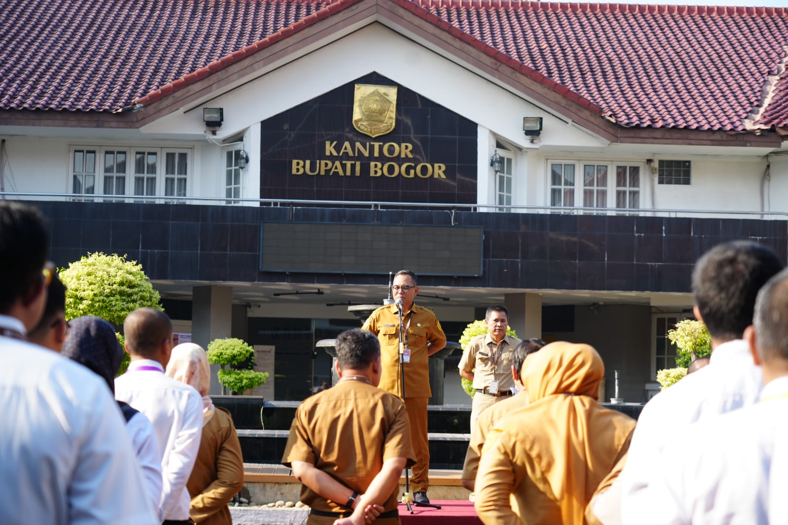 Hal ini disampaikannya saat memimpin apel gabungan, di Sekretariat Daerah, Senin (5/10). Apel gabungan diikuti seluruh jajaran Asisten, Staf Ahli, dan kepala perangkat daerah lingkup Pemkab Bogor.