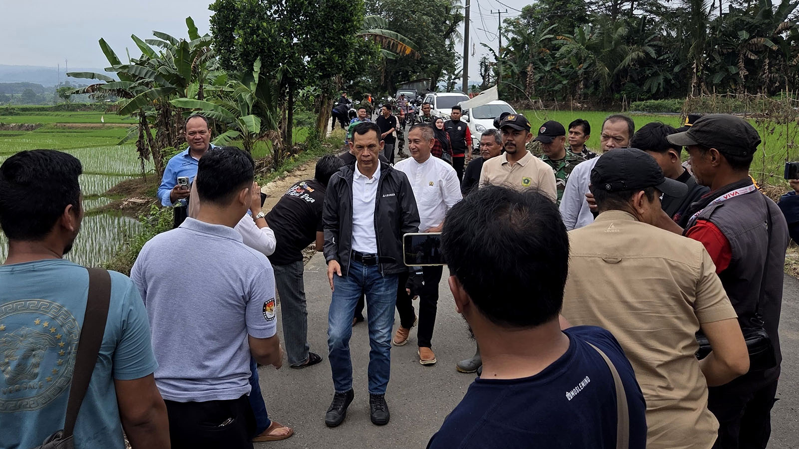 Tanjungsari, Kompim – Jaro Ade, Wakil Bupati Bogor meninjau langsung lokasi amblasnya jembatan di Kampung Pasir Kalong, RT 13/04, Desa Antajaya, Kecamatan Tanjungsari, pada Jumat (17/4/2026). Peninjauan ini dilakukan untuk memastikan kondisi di lapangan serta langkah cepat penanganan bagi masyarakat terdampak.