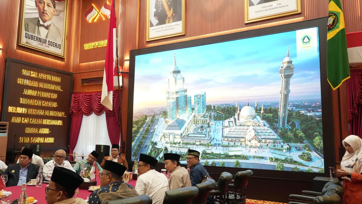 Rudy menerangkan, progres pembangunan Masjid Raya Nurul Wathon juga terus menunjukkan perkembangan. Meskipun tampak masih ada beberapa pekerjaan di bagian luar, pemerintah menargetkan penyelesaian fisik di akhir Desember sudah mencapai lebih dari 90 persen.