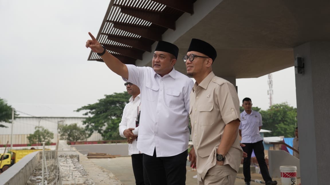 CIBINONG-Wakil Menteri Haji dan Umrah, Dahnil Anjar Simanjuntak memberikan apresiasi tinggi kepada Bupati Bogor, Rudy Susmanto, atas terobosan besar dalam pengembangan kawasan layanan haji dan pusat ekonomi umat. Hal ini disampaikannya saat melakukan kunjungan kerja ke Kabupaten Bogor meninjau langsung progres pembangunannya, Rabu (10/12).