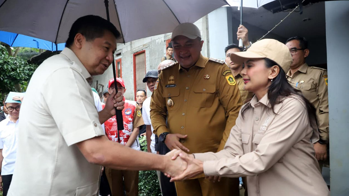Babakan Madang, Kompim – Bupati Bogor Rudy Susmanto mendampingi Menteri Perumahan dan Kawasan Permukiman (PKP) Maruarar Sirait meninjau secara langsung pelaksanaan Program Bantuan Stimulan Perumahan Swadaya (BSPS) di Desa Cijayanti, Kecamatan Babakan Madang, Kabupaten Bogor, pada Senin (3/11/2025).