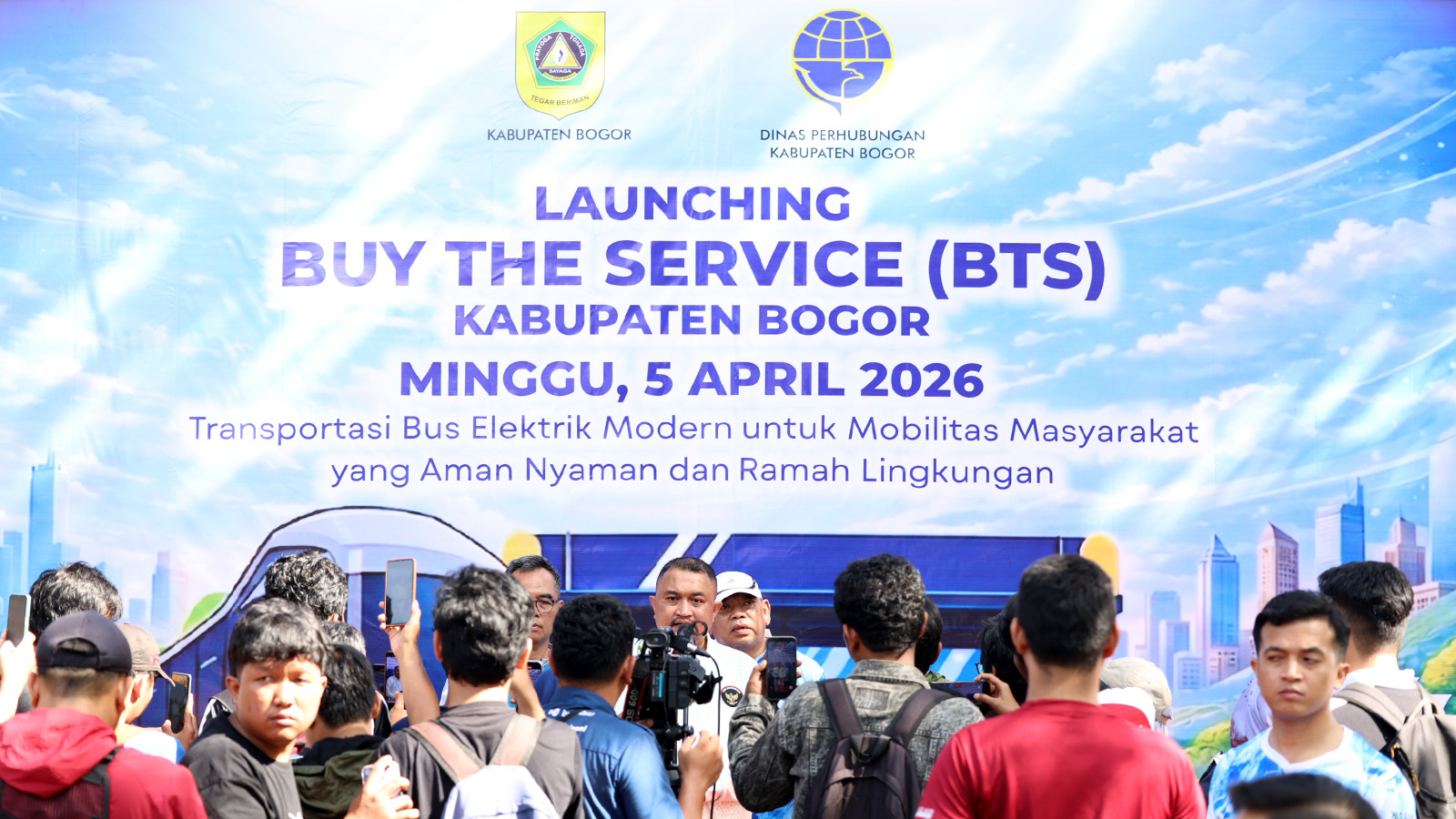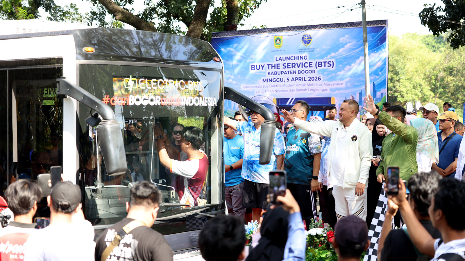 Cibinong, Kompim — Rudy Susmanto, Bupati Bogor, meresmikan operasional bus listrik gratis bagi masyarakat saat gelaran Car Free Day di kawasan Tegar Beriman, pada Minggu, (5/4/2026). Langkah ini diambil sebagai strategi Pemerintah Kabupaten Bogor untuk menghadirkan transportasi ramah lingkungan sekaligus menekan polusi udara.